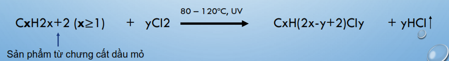 - CP được sản xuất từ phản ứng của các paraffin mạch thẳng thông thường (thu được trong quá trình chưng cất dầu mở) trong pha lỏng với khí clo tại nhiệt độ 80 - 120°C.